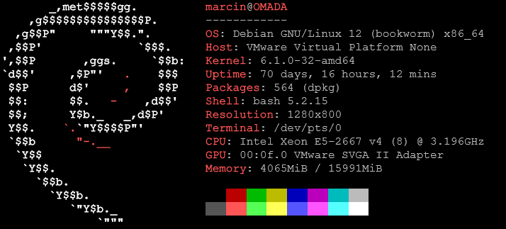 Instalacja Neofetch na Debian 12Aby zainstalować Neofetch na Debianie 12, wykonaj poniższe kroki:Zaktualizuj listę pakietów i zainstaluj aktualizacje systemowe: sudo apt update && sudo apt upgrade ta komenda pobiera najnowsze informacje o pakietach i instaluje dostępne aktualizacje. Zainstaluj Neofetch z oficjalnego repozytorium Debiana: sudo apt install neofetch dzięki temu Neofetch oraz jego zależności zostaną pobrane i zainstalowane na Twoim systemie. ...